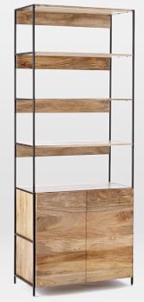 V Shelf Dark Wood & Iron Open Bookcase